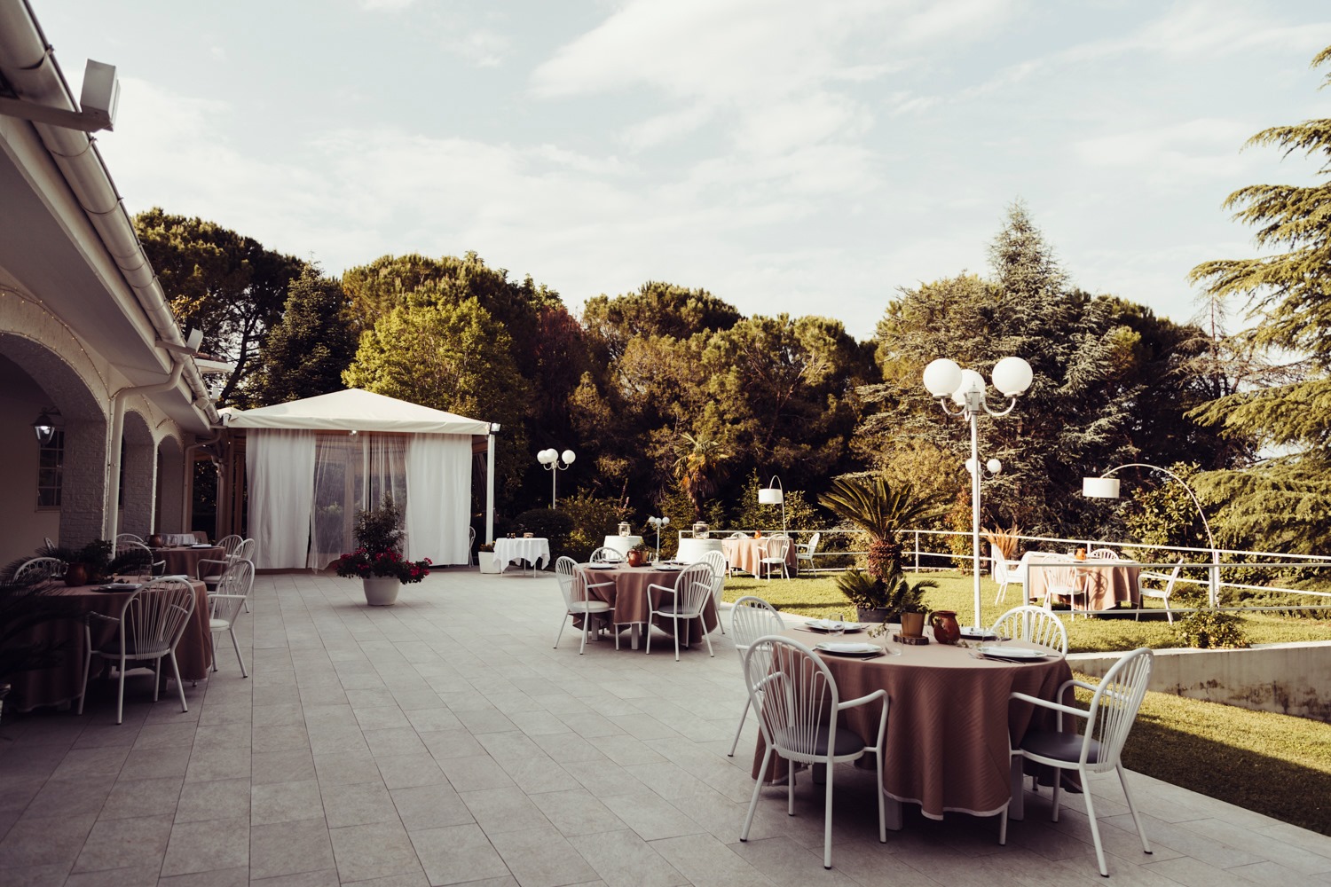 La villa nasce per accogliere eventi di ogni tipo. Raffinata ma conviviale, prende i colori e l’atmosfera del tuo giorno speciale e li fa suoi: matrimoni, comunioni, battesimi, compleanni importanti, feste private e aziendali. All’interno troverai una sala elegante e luminosa; all’esterno, ampi spazi nel verde perfetti per aperitivi, momenti fotografici, tagli di torta e per goderti la magia dell’aria aperta.